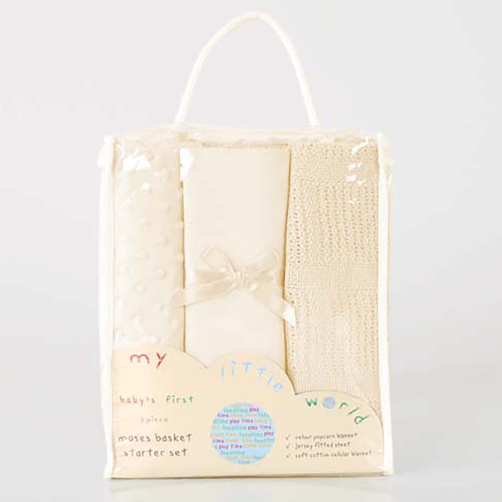 Indulge in the ultimate comfort experience for your little bundle of joy with our My Little World Cream 3-Piece Moses Basket Starter Set! This incredible starter pack is an essential for any cot bed, offering everything your baby needs for a sound and restful sleep. With a luxuriously soft and smooth fleece fitted sheet, a snuggly fleece blanket, and a versatile cellular blanket, this set contains the three most crucial items for your little one's comfort.