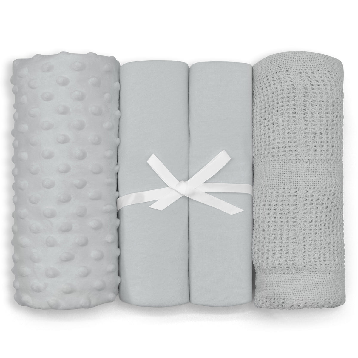 2 x Jersey Fitted Sheets 1 x Cellular Blanket 1 x Popcorn Blanket |