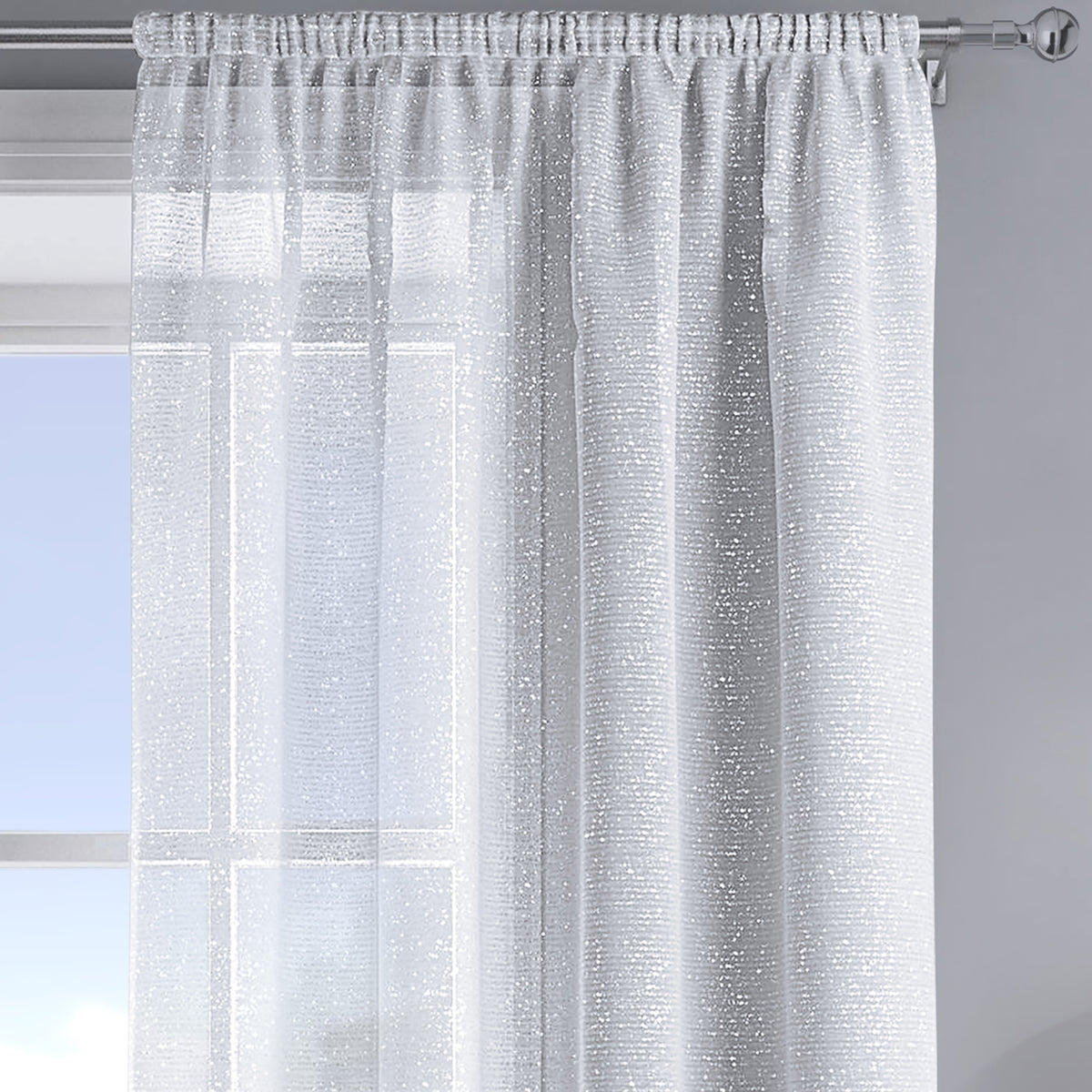 Elevate your home décor with the Velosso Alessandria Sparkle White Slot Top Voile Panel, now available at an unbeatable price. This classic and chic voile panel features a crisp white colour and is woven with a silver thread that runs through the entire fabric, creating a dazzling shimmer that catches the natural light and fills your room with a glorious glow.