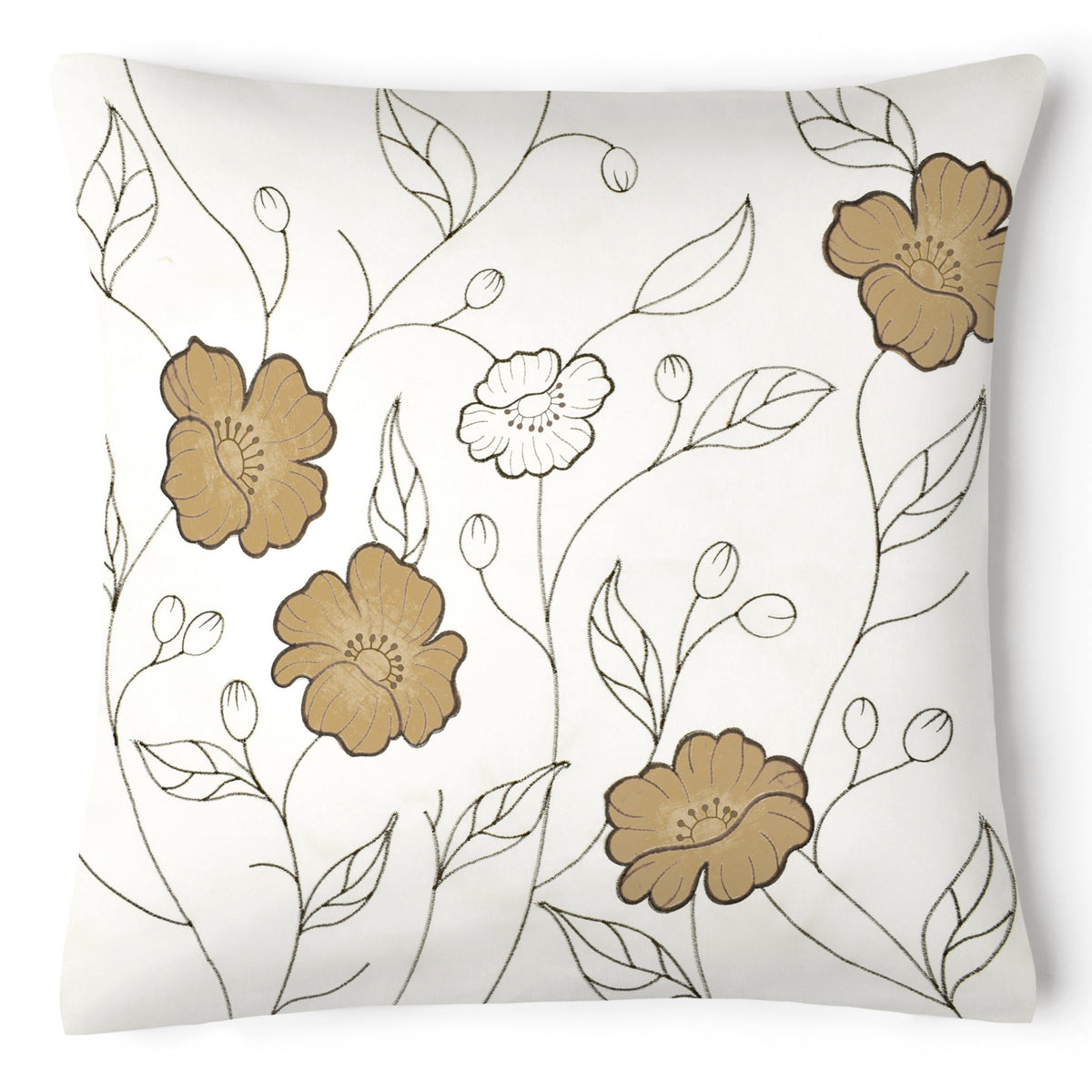 Cushions can transform your living space, adding colour, texture, and a sense of style. With this cushion cover, you can revamp your room décor and give it a whole new look. Featuring a delicate design of sketched branches, closed flower buds, and blooming flowers in a subtle latte colour, this floral cushion cover is sure to make a statement. The high-quality materials ensure durability and longevity, making it a great investment for your home décor.