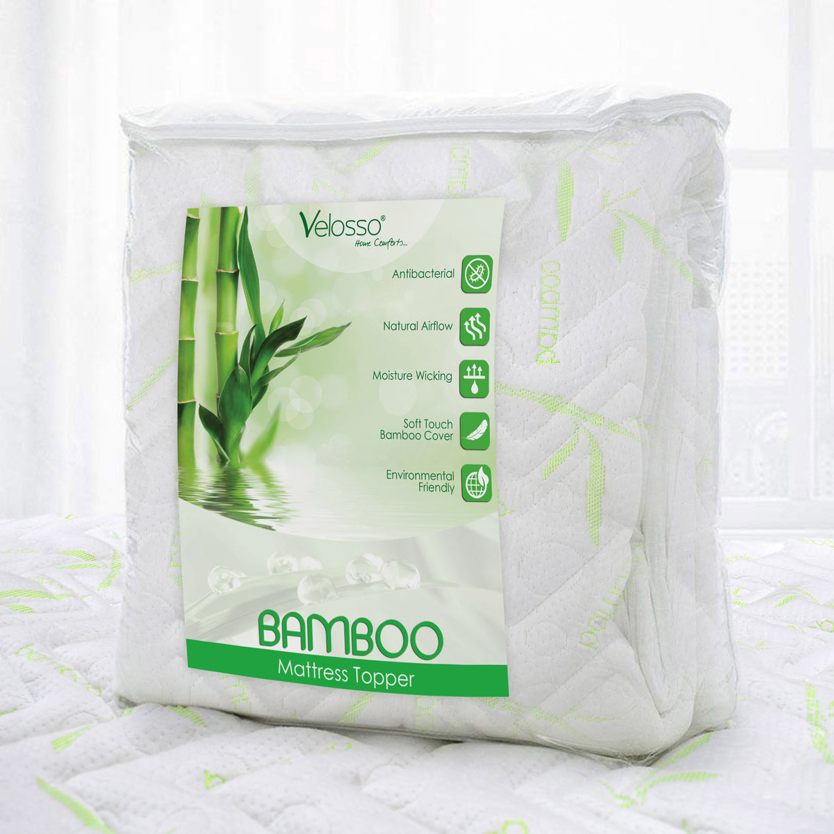 Looking for a luxurious and comfortable sleep? Shop our Velosso Luxury Bamboo Mattress Topper. This high-quality mattress topper is made with a soft-touch bamboo cover that is not only antibacterial but also provides increased airflow circulation and breathability. The pretty leaf design of the piled edge topper adds a touch of elegance to your bedroom décor. Experience enhanced comfort and quality sleep with this beautiful and practical bamboo mattress topper.