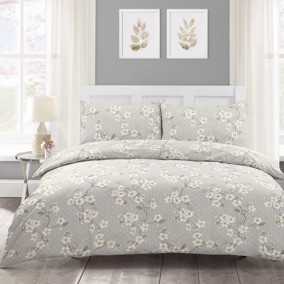 Bring a touch of sophistication and nature to your bedroom with this stunning cherry blossom duvet cover set. The neutral tones of grey and white are beautifully accented by the subtle pops of colour from the cherry blossom flowers. The design features a breathtaking pattern of cherry blossom branches against a pale grey background, with a chic white garden trellis pattern adding a touch of elegance. With its clean, crisp, and vibrant look, this cherry blossom bedding is the perfect addition to any neutral-toned décor. Made from soft and cosy polycotton fabric, our cherry blossom duvet cover set promises both comfort and longevity.