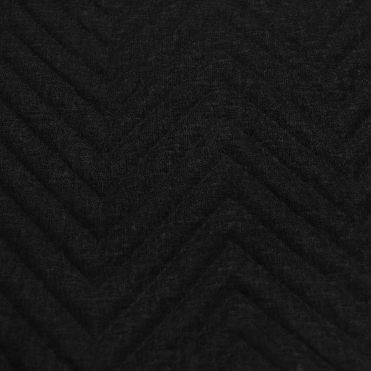 A solid shade of black in this thick embossed chevron pinsonic door curtain, a soft touch luxurious curtain with a semi-plain print design that oozes elegance, a great choice if you are after a plain curtain with an elegant touch. Made from a super durable microfibre fabric that is soft to touch, extremely hard wearing and is resistant to creasing resulting in your curtain hanging perfectly. With a quality blackout coating, this curtain will give you added privacy and a great sleep by blocking out unwanted light. Thermal properties ensure to keep the winter draught out and keep your room warm and cosy retaining the heat with added insulation. Made with a silver eyelet chrome header for effortless gliding and smooth movement. Suitable to have hung on your door all year round. Machine washable.