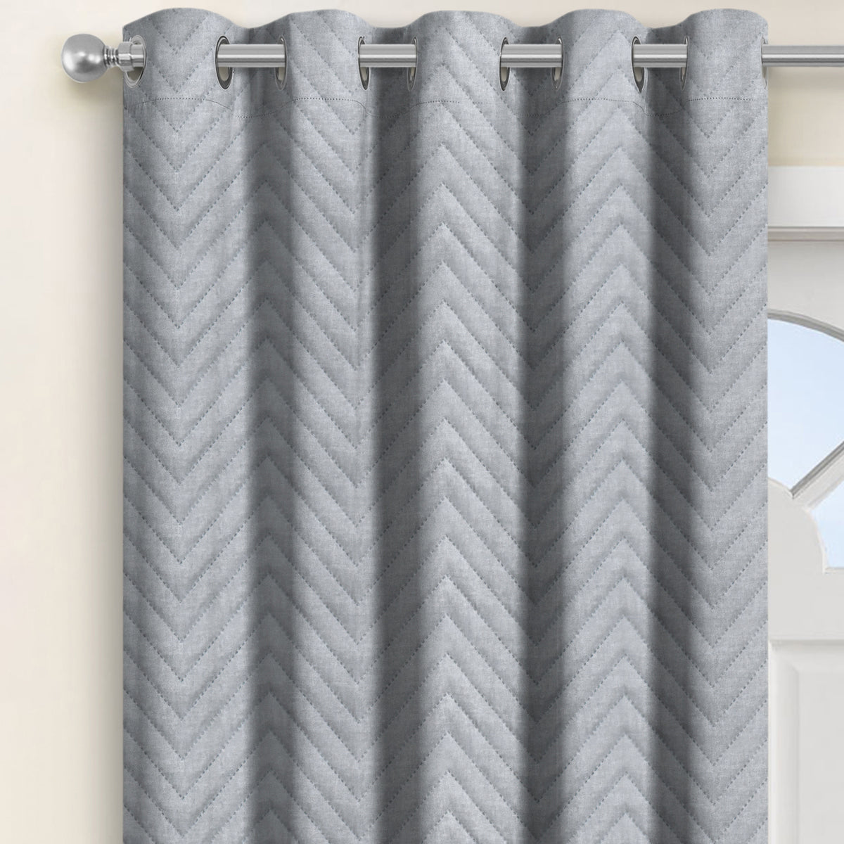 Update your home for less with our Velosso Chevron Grey Thermal Eyelet Door Curtain. In a stylish shade of grey, this high quality door curtain is chic and super practical. Featuring a chevron pinsonic print on an embossed, thick microfibre fabric, this door curtain feels soft to the touch.