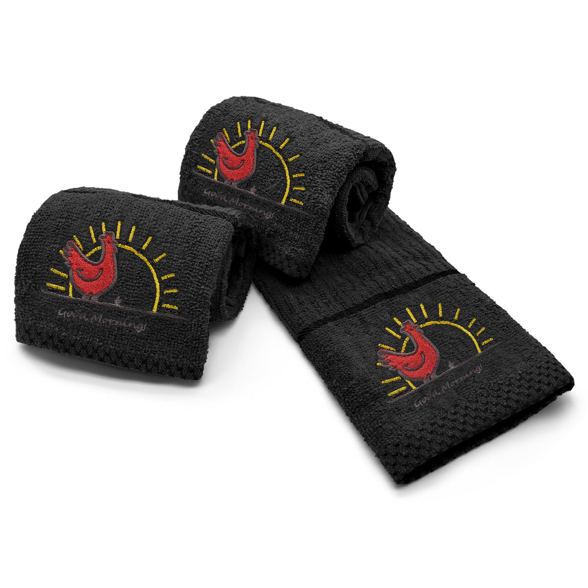 Discover a delightful addition to your kitchen with our Kitchen Trends Black Chicken Tea Towel. No kitchen is complete without a good supply of tea towels, and this one is sure to become a favorite. This premium quality black tea towel is crafted from 100% pure cotton, ensuring a soft and absorbent tea towel for all your daily needs. With its charming Chicken-themed design on a black background and featuring a "Good morning" message, this tea towel is not just practical but also stylish.