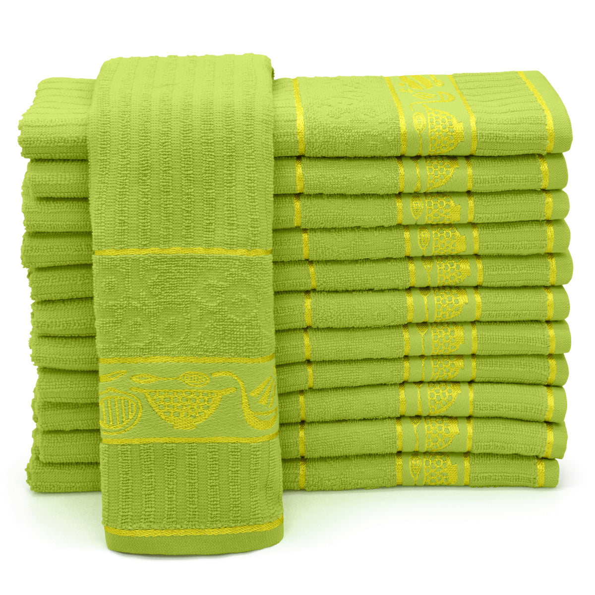 Looking for a tea towel that's both functional and stylish? Look no further than our Kitchen Trends Cooks Jacquard Lime Green Tea Towel. Made from 100% pure cotton, this high-quality tea towel boasts a stunning chef-themed design that is both elegant and practical. Featuring a pretty border of cooking utensils and ribbed texture with borders of designs, this tea towel is sure to impress.