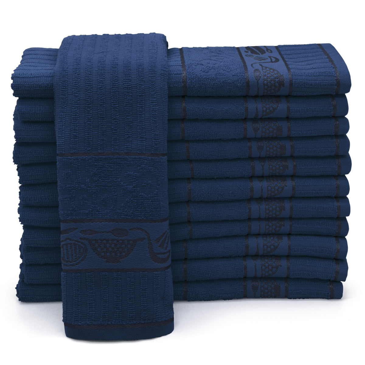 Looking for a tea towel that's both functional and stylish? Look no further than our Kitchen Trends Cooks Jacquard Navy Blue Tea Towel. Made from 100% pure cotton, this high-quality tea towel boasts a stunning chef-themed design that is both elegant and practical. Featuring a pretty border of cooking utensils and ribbed texture with borders of designs, this tea towel is sure to impress.