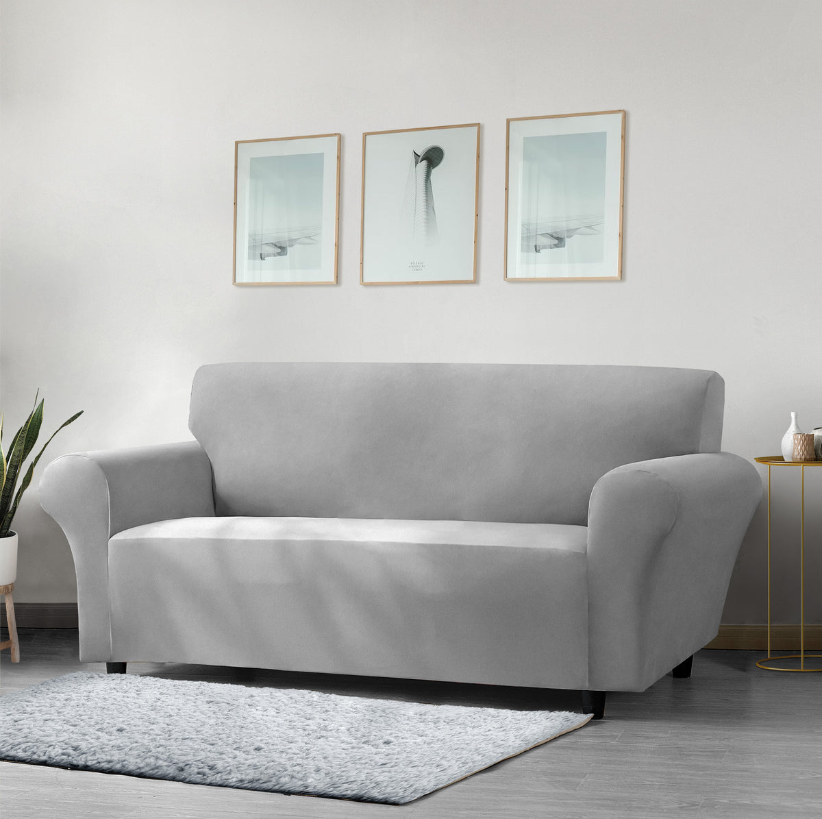 Home Republic Mink Velvet Silver Luxury Stretch Sofa Slip Cover