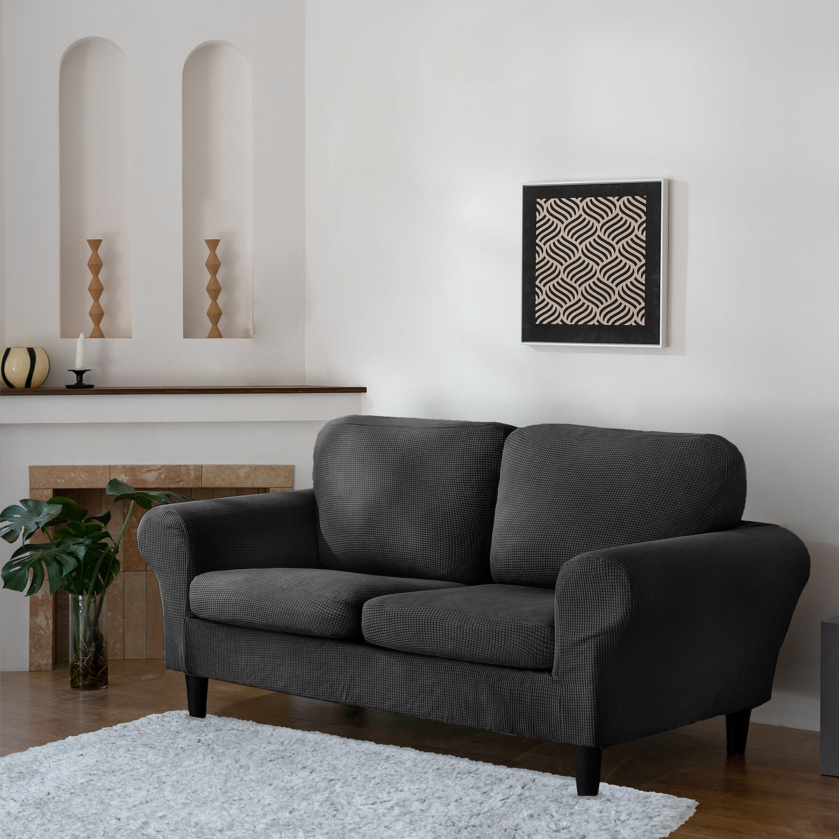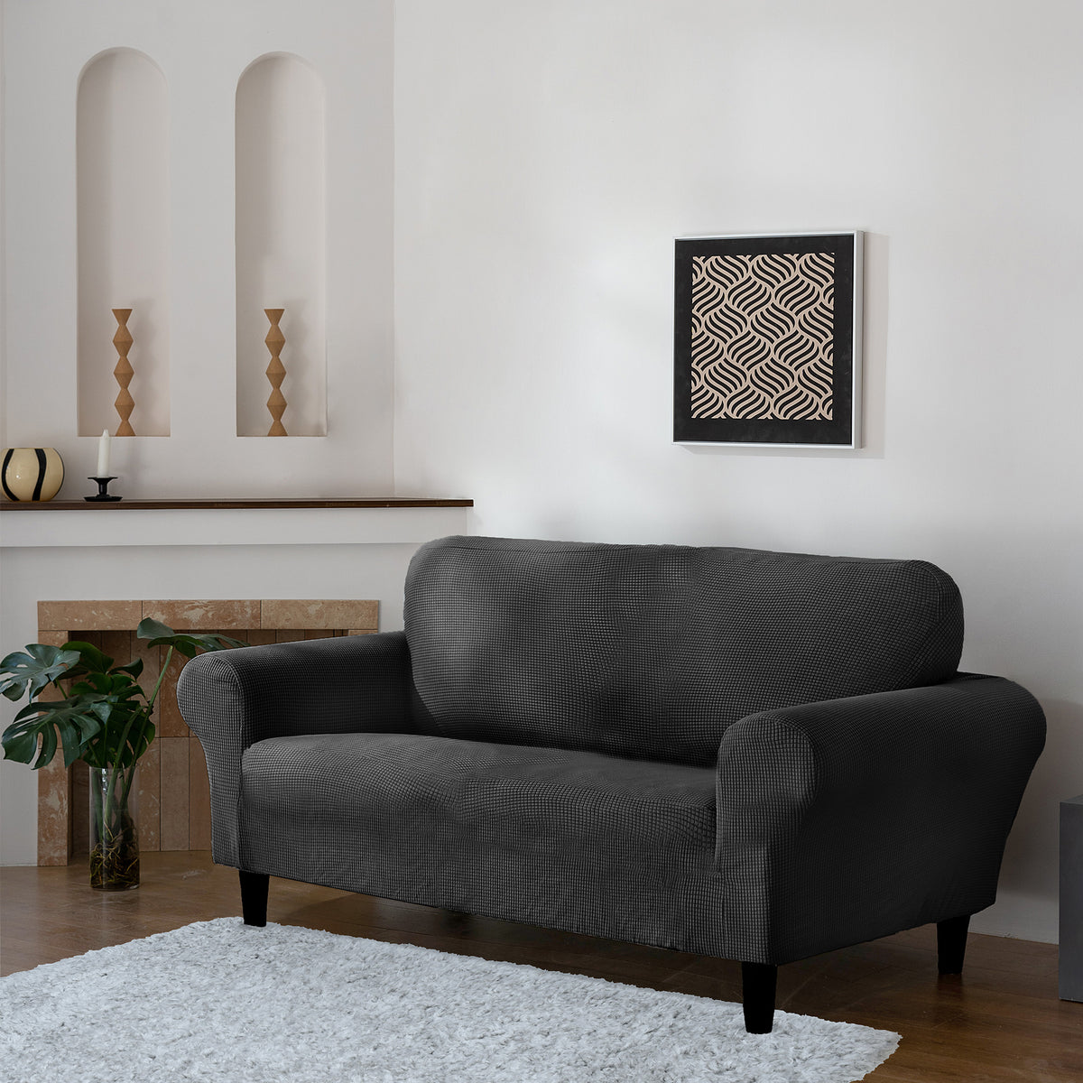 Home Republic Delby Textured Black Luxury Stretch Sofa Slip Cover