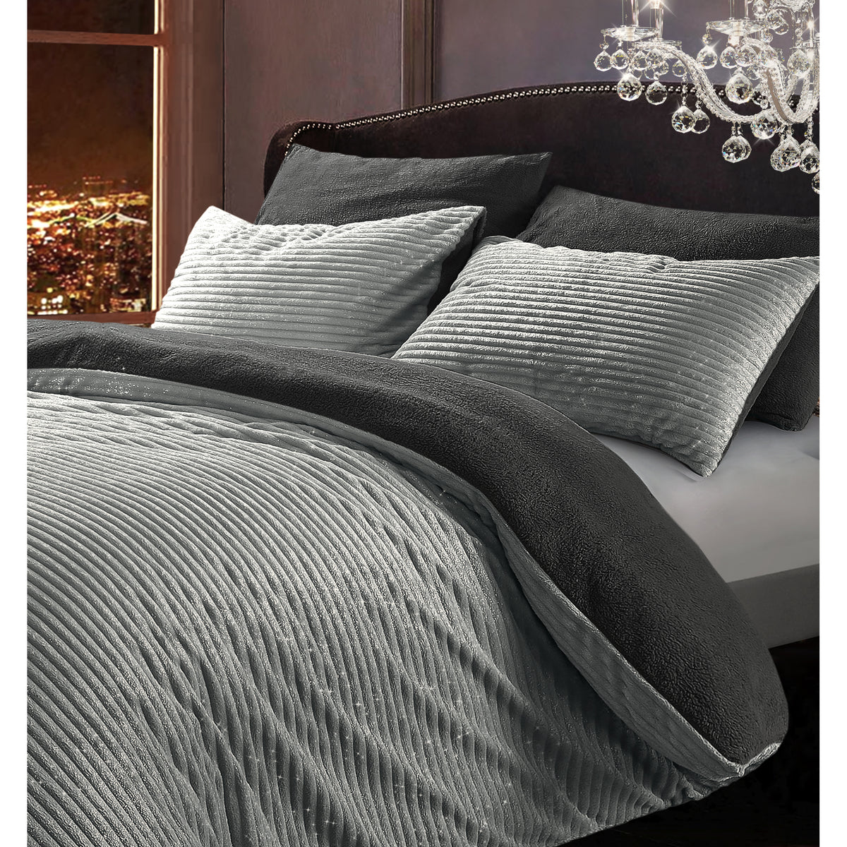 Introducing our superior Velosso Silver Glitter Corduroy Teddy Fleece Duvet Set, featuring a stunning combination of plush corduroy and soft flannel reverse, complete with matching pillowcases. This perfect pairing of two luxurious fabrics not only looks ravishing, but it also keeps you snug, comfortable, and cosy in the colder months.