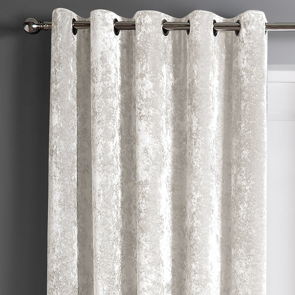 A stunning shade of clotted cream crushed velvet curtains in the most softest of velvets, have your friends talking with these stylish curtains that ooze sophistication and style, these beautiful curtains delicately shimmer against natural light and beam glitzy shimmer with artificial lighting a real dazzling effect. Made with silver chrome eyelet header, a quick and effortless installation direct onto your curtain pole, this eyelet header allows your curtains to create perfect folds and drape elegantly whilst giving your curtains great structure, fully lined for added structure and added privacy, will also aid in keeping your window insulated.