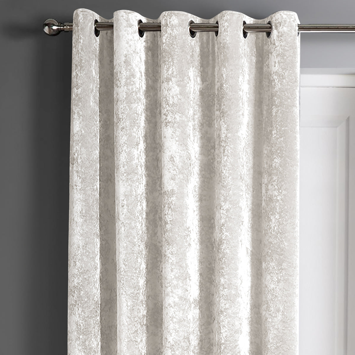 A stylish addition to your door, our Intimates Crushed Velvet Cream Eyelet Door Curtain is a contemporary classic shade of cream that will suits most colour pallets. Enhance the look of your room with this sleek yet practical door ideal for improved insulation, this door curtain also helps to block external heat in summer and retain internal warmth in winter. Fully lined with a quality fabric that gives structure to your curtain and allows it to drape perfectly. Readymade for your convenience, with a silver chrome eyelet header that gives you the ease of installing your curtains instantly. Machine washable. ONE CURTAIN PANEL.