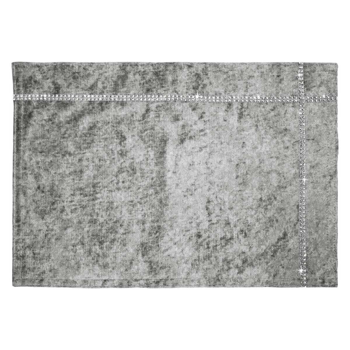 Upgrade your dining table with our Intimates Silver Crushed Velvet Diamante Table Placemat. Crafted from superb quality crushed velvet, these silver placemats are soft, luxurious and will bring a touch of glamour to your dining experience. The delicate diamantes on two sides of the placemat add a touch of sparkle to your table setting, making it ideal for special occasions. Measuring 33cm x 45cm, these placemats are the perfect size to fit any table.