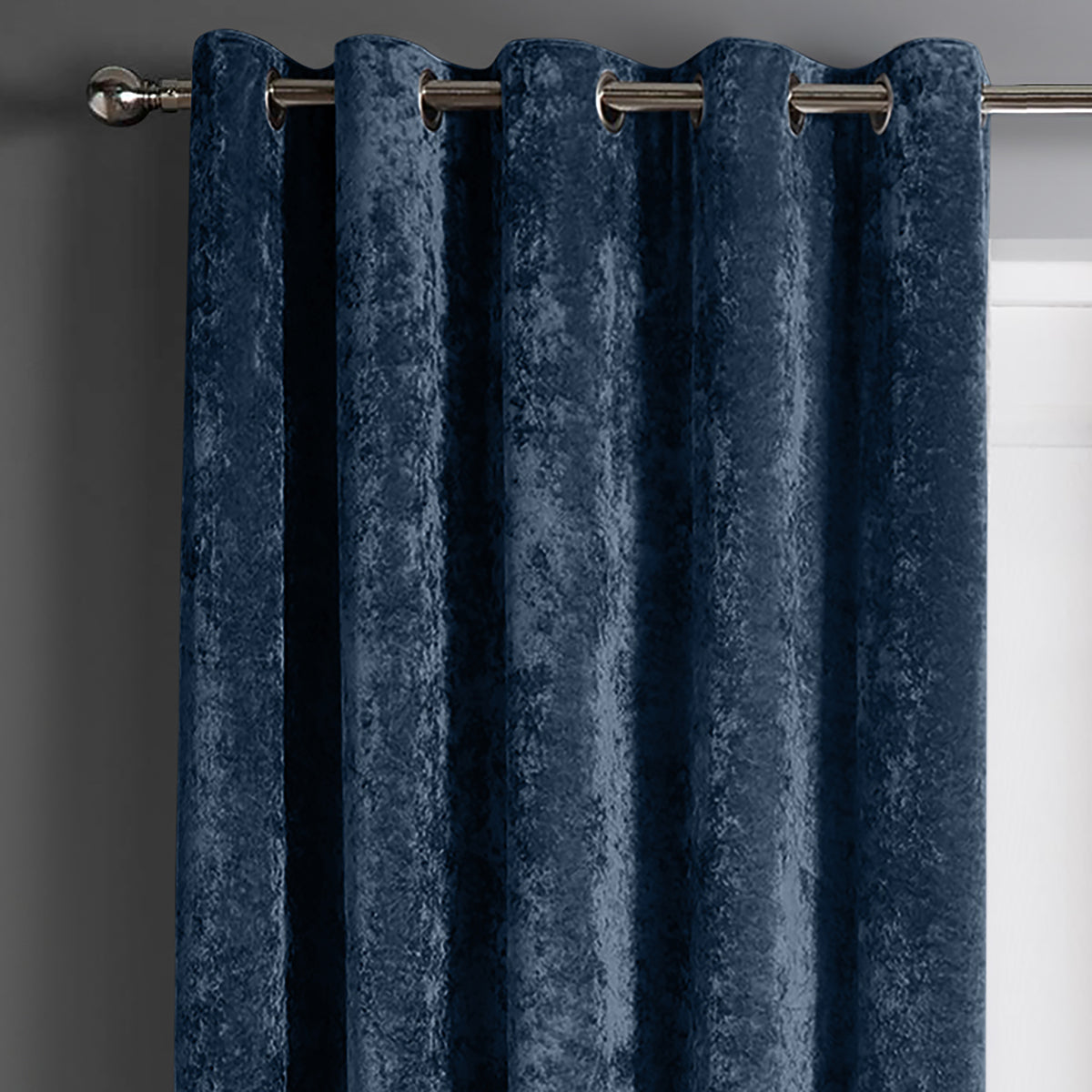 Intimates Navy Blue Crushed Velvet Ready Made Eyelet Curtains