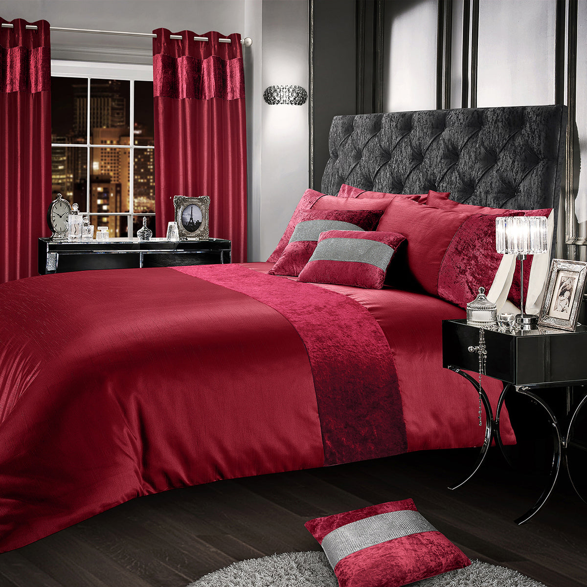 The matching pillowcases complete the look with their luxurious crushed velvet panel on the sides, bringing the design and feel together in perfect harmony. This raspberry coloured crushed velvet bedding set is a great choice for those who love a bold colour palette.