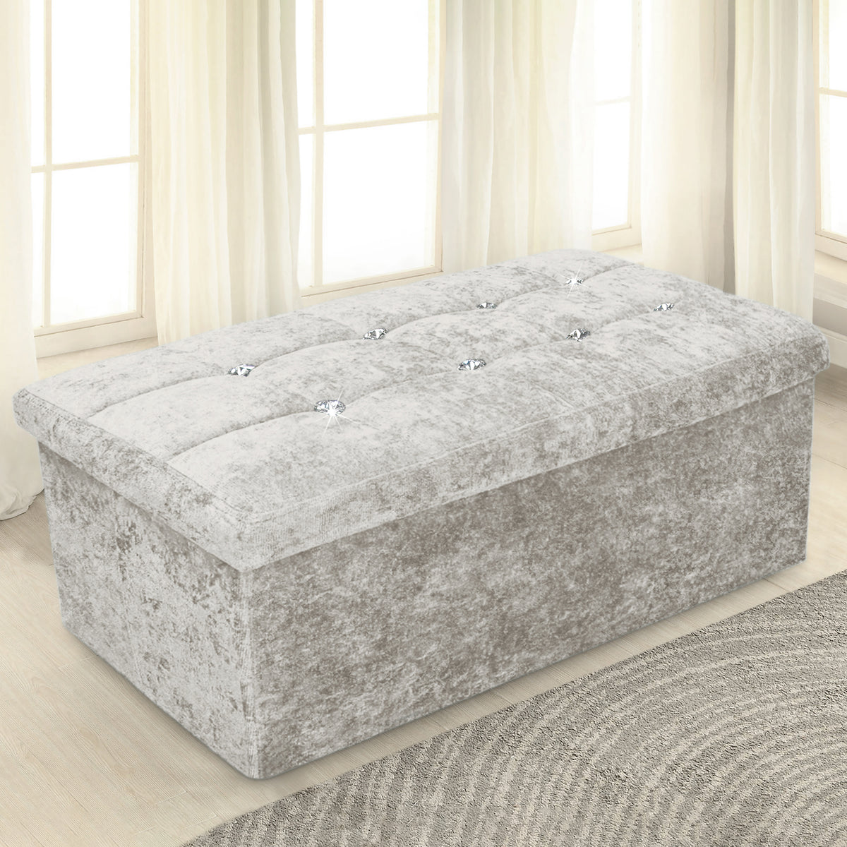 Short for space? but have lots of items with no place to store? Then these stylish and sleek looking collapsable storage boxes are your solution. Have all your items neatly tucked away in our storage boxes. Our storage boxes are utterly practical and gorgeous looking, they are collapsible and take up very little room, they can instantly be assembled for you to store your items away. They take up little room and store a lot. You can use them for absolutely anything from, books, paperwork, DVD's, games, bed linen, towels, the options are endless. These sleek storage boxes can be placed anywhere, they can add to your decor and look rather smart. This large rectangular cream storage box is made from a quality crushed velvet and has pretty buttons on the lid creating textured boxes.