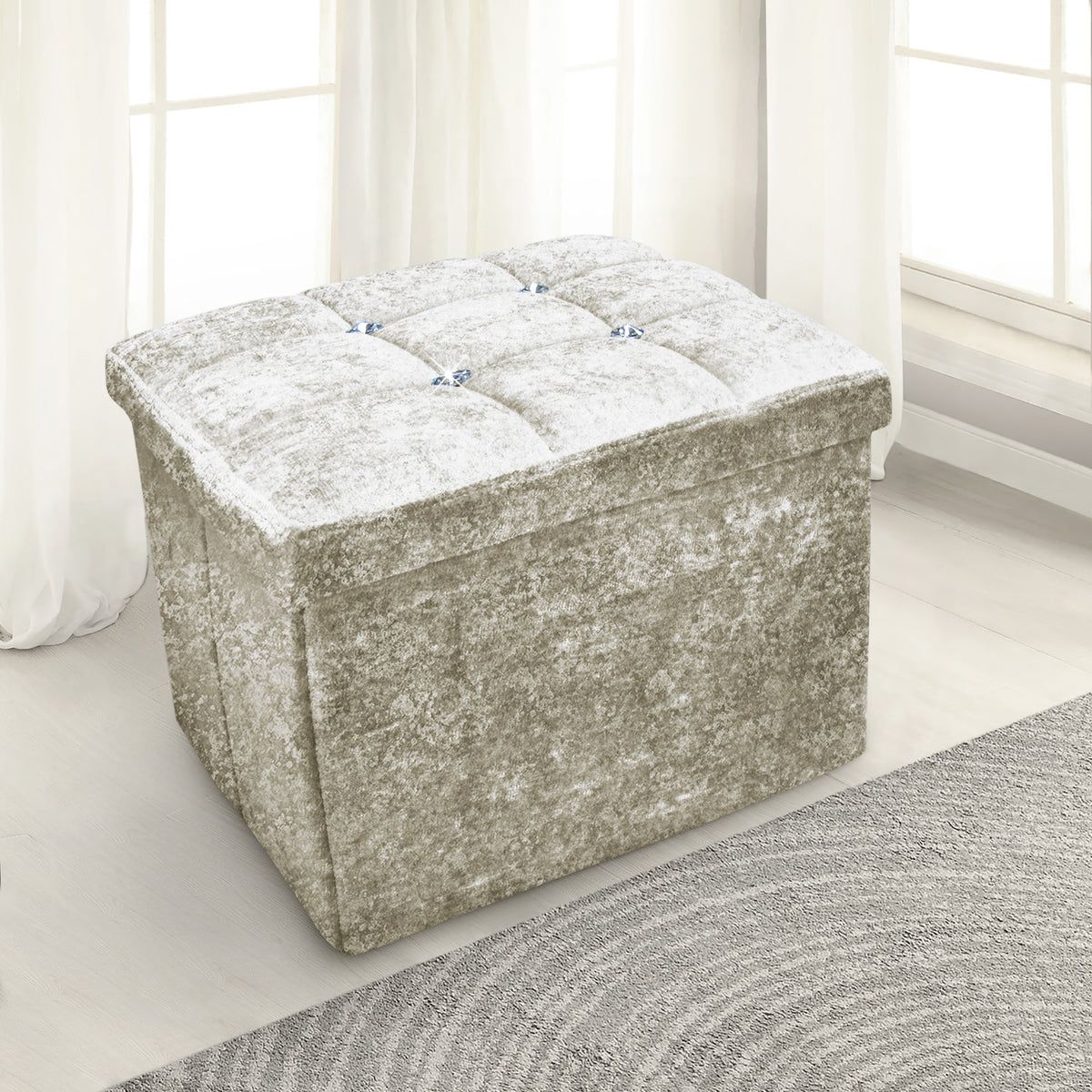 Short for space? but have lots of items with no place to store? Then these stylish and sleek looking collapsable storage boxes are your solution. Have all your items neatly tucked away in our storage boxes. Our storage boxes are utterly practical and gorgeous looking, they are collapsible and take up very little room, they can instantly be assembled for you to store your items away. They take up little room and store a lot. You can use them for absolutely anything from, books, paperwork, DVD's, games, bed linen, towels, the options are endless. These sleek storage boxes can be placed anywhere, they can add to your decor and look rather smart. This popular natural coloured storage box is made from a quality crushed velvet and has pretty buttons on the lid creating textured boxes.