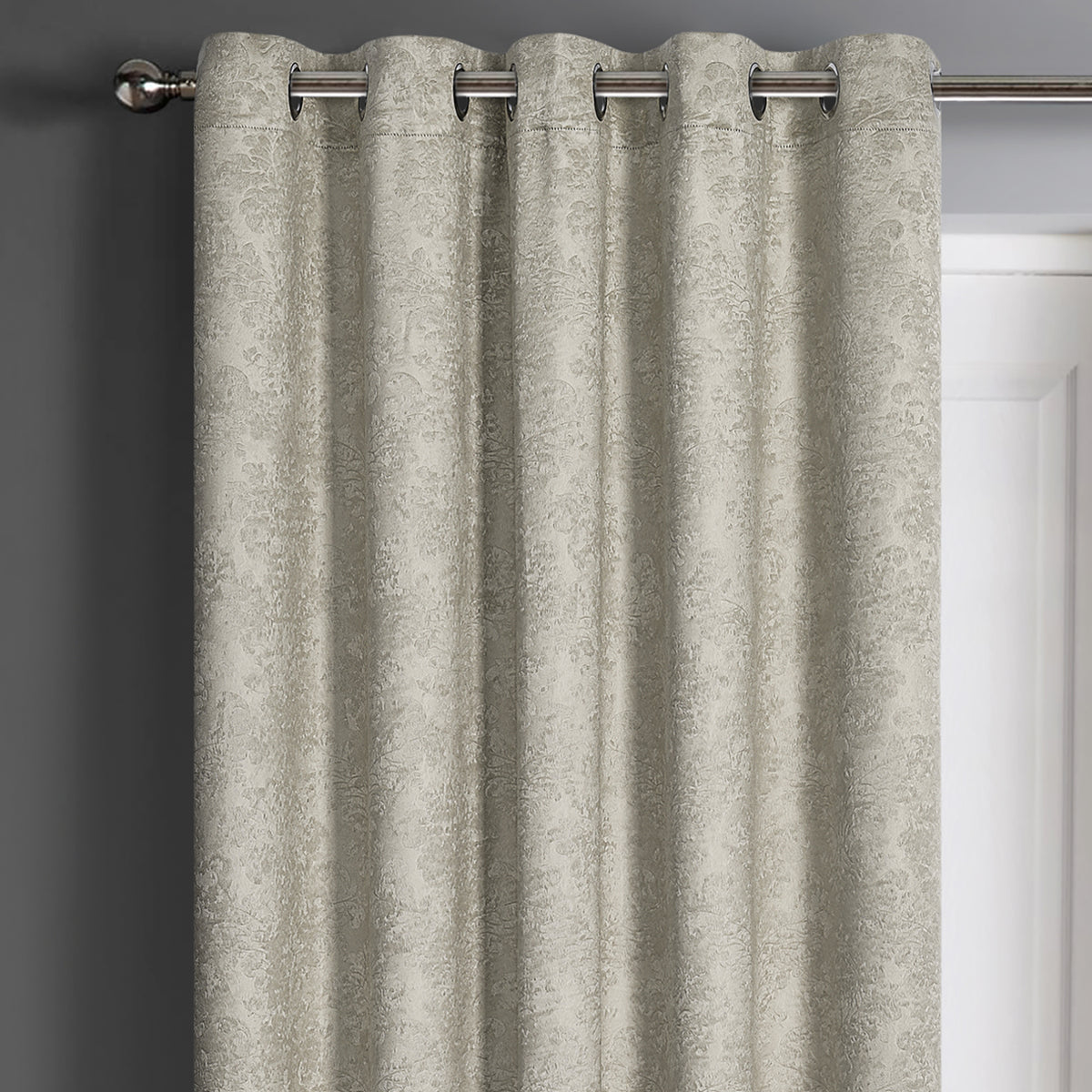 This classic lattel door curtain is the epitome of class and sophistication made from a polyester embossed fabric encrusted with lavish damask design, a regal inspired design that is sure to enhance your room décor. Made in a colour that is suited to compliment most colour pallets, made with an easy to install silver chrome eyelet header that will create the most perfect drape and folds, perfect for all year-round use. Dim-out series provides increased privacy blocking out unwanted draught keeping your room cool during summer also eliminates cold draughts from entering during winter resulting in the energy efficiency with triple layered fabric, Dim-out series also reduces outside noise, innovative high density yarn ensure light is filtered as well as blocking harmful uv-rays . Energy efficient, reduces noise, Uv rays protection, eliminates draught, Thermal and Dim-out. Measurements stated width x drop. Machine washable. ONE CURTAIN PANEL ONLY.