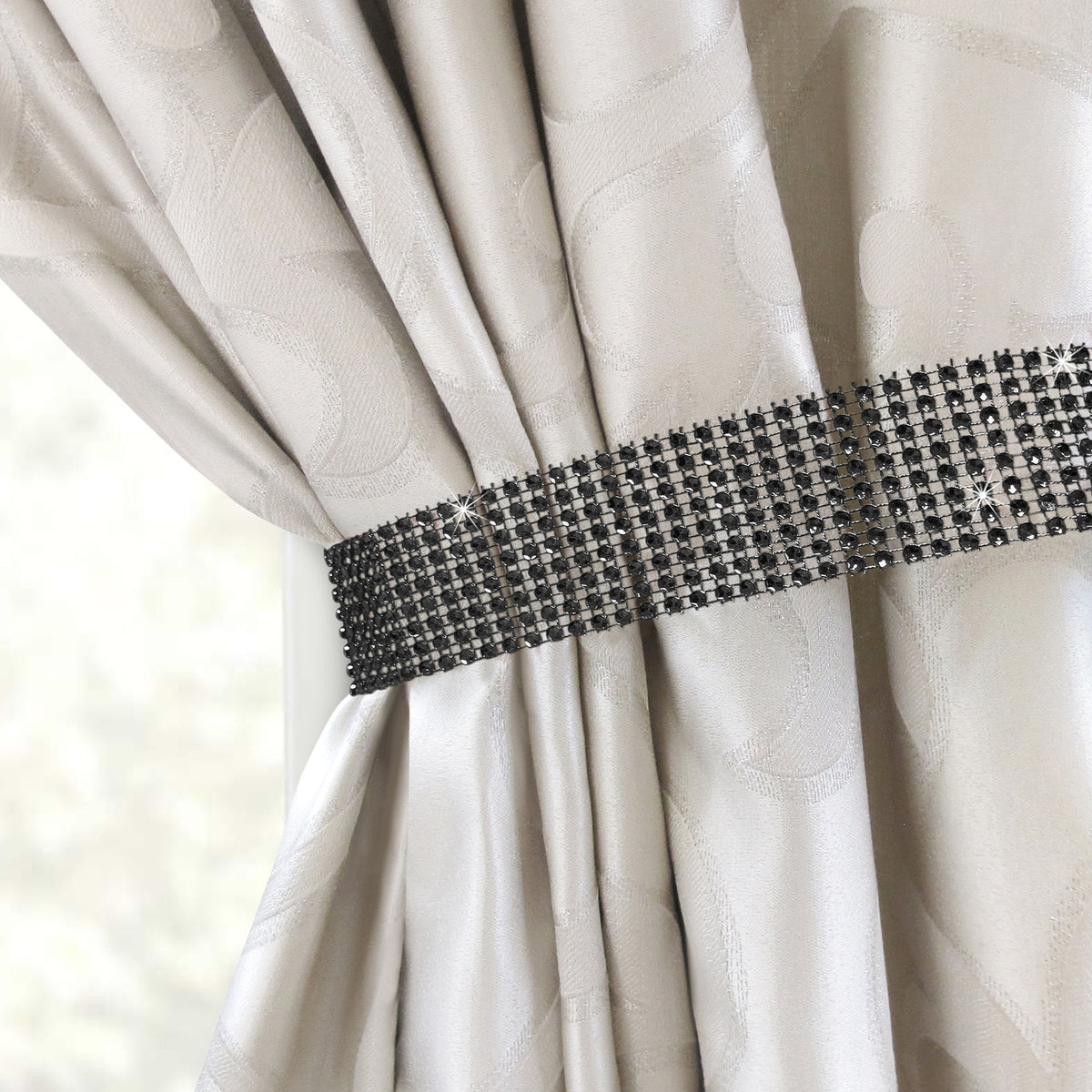 Elevate the style of your curtains with our Intimates Sparkle Diamante Strip Black Tiebacks. Curtain tiebacks are versatile accessories that not only add functionality but also enhance the overall look of your curtains, voiles nets, and anything else you can think of. Our black curtain tiebacks come in a pair and are designed to create beautiful folds in your curtains, adding depth and texture to your space.