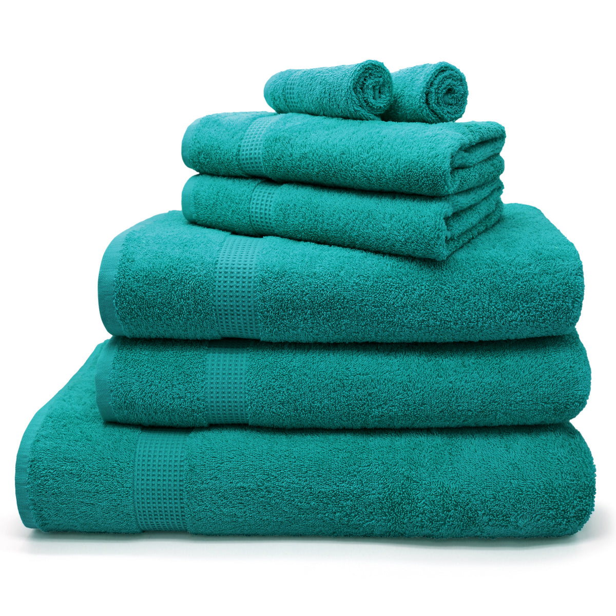 Featuring a stylish waffle header for added detailing, our Mayfair towels are the perfect complement to any bathroom décor. Choose the timeless shade of jade to add a touch of elegance and sophistication to your space.