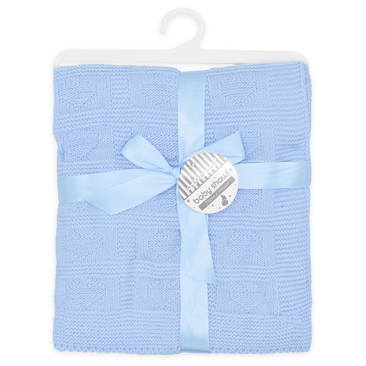 Embrace your little one with our My Little World Blue Knitted Baby Shawl. This soft and comfortable blue shawl is designed to keep your baby warm and snug, whether it's in their Moses basket, cot, or buggy. With its neat and tidy knitted design of hearts in checked boxes, this shawl is both practical and adorable.