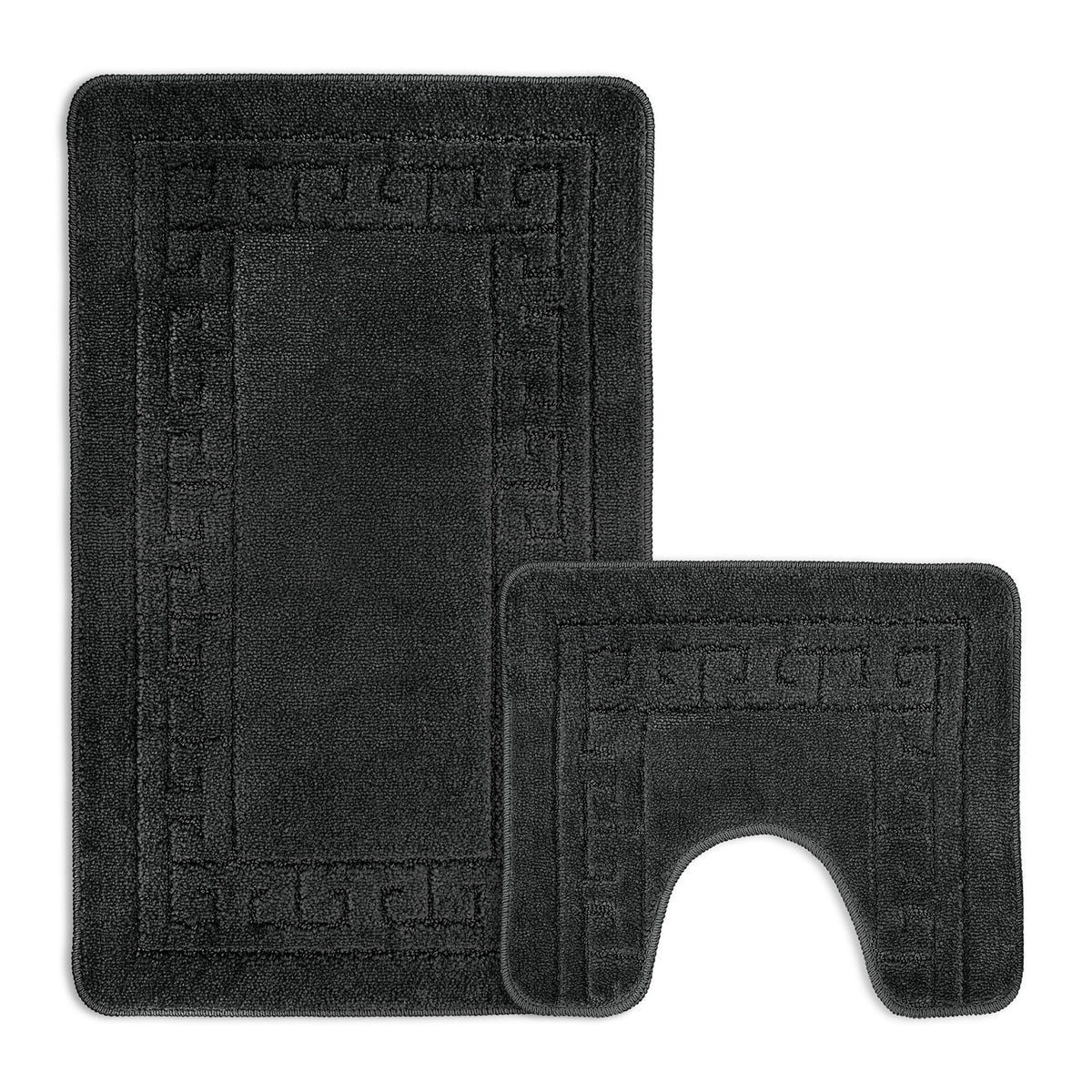Elevate your bathroom with our Velosso Greek Key Charcoal Grey Non Slip Bath Mat Set, the perfect combination of style and safety. Our set includes a luxurious bath mat and pedestal mat, both adorned with a chic geometric border, all in a stunning shade of charcoal grey. Experience the ultimate comfort with our super-absorbent mats, designed to keep your feet cosy and dry.