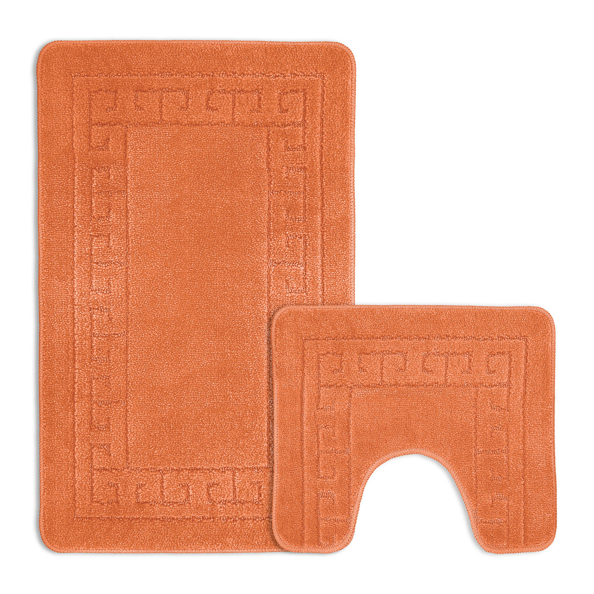 Elevate your bathroom with our Velosso Greek Key Orange Non Slip Bath Mat Set, the perfect combination of style and safety. Our set includes a luxurious bath mat and pedestal mat, both adorned with a chic geometric border, all in a stunning shade of orange. Experience the ultimate comfort with our super-absorbent mats, designed to keep your feet cosy and dry.