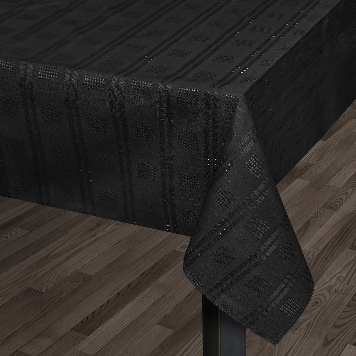 This black tablecloth is perfect for any occasion, whether it's a formal dinner party or a casual family meal. The luxurious fabric drapes beautifully and is sure to impress your guests. Pair it with matching accessories such as placemats, napkins, and napkin rings to create a cohesive and stylish look.