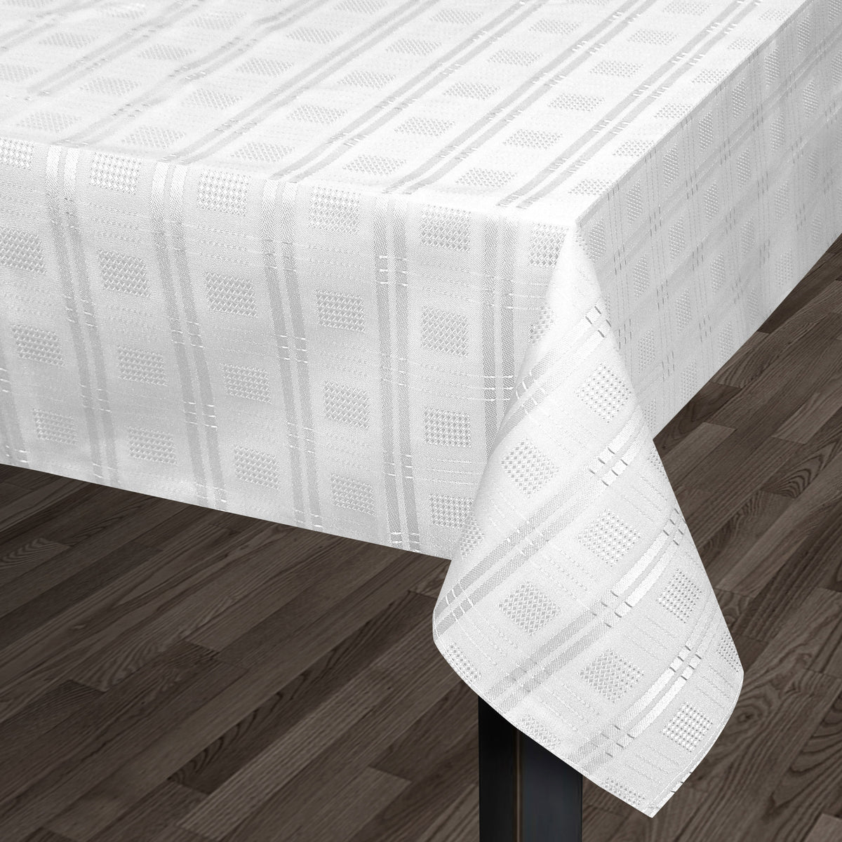 This white tablecloth is perfect for any occasion, whether it's a formal dinner party or a casual family meal. The luxurious fabric drapes beautifully and is sure to impress your guests. Pair it with matching accessories such as placemats, napkins, and napkin rings to create a cohesive and stylish look.