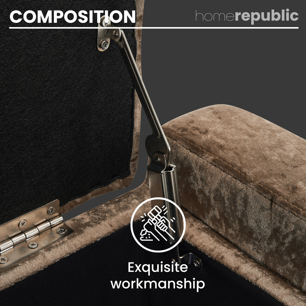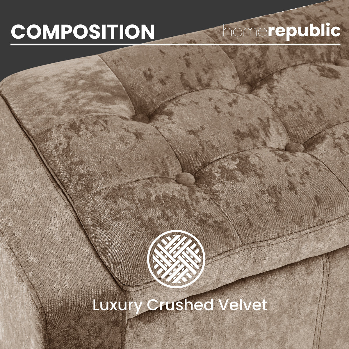Say goodbye to clutter and hello to a more organised and stylish home with our Home Republic Large Mink Crushed Velvet Ottoman Box. If you’re short on space but have lots of items with nowhere to store them, our stylish ottoman boxes are the solution you've been searching for. With our ottoman boxes, you can neatly tuck away all your items while also adding practicality and beauty to your home décor.
