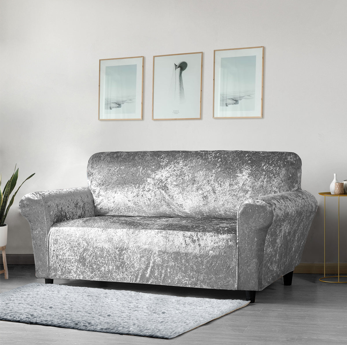 Give your sofa a fresh new look and protect it from spills and stains with our Home Republic Crushed Velvet Silver Luxury Stretch Sofa Slip Cover. This stretchy slip cover offers a snug fit and a touch of luxury to your living space. Made with care, this sofa slip cover is both stylish and practical. The crushed velvet fabric adds a hint of opulence, while the stretch design ensures a comfortable and secure fit.