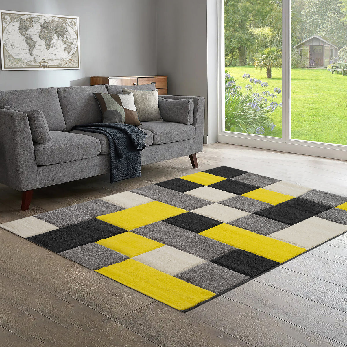 Add the "WOW" factor to your home with our Home Republic Dexter Carved Ochre Yellow Geometric Blocks Floor Rug. This machine-woven, textured rug features a contemporary geometric pattern made with high-durable polypropylene fibres, perfect for everyday use in any room of your home. Available in various sizes, this ochre rug has a durable non-slip backing suitable for all floor types.