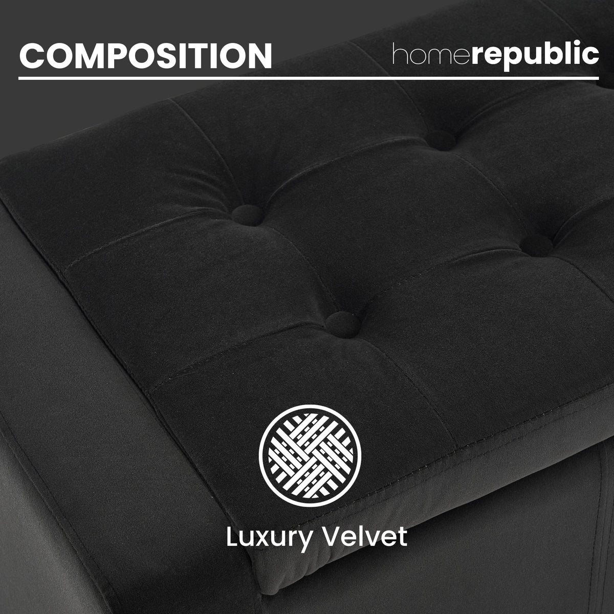 Our large ottoman storage boxes are not only gorgeous but also incredibly practical. They take up very little room and can be assembled instantly to store all your items. They store a lot while taking up little space, making them perfect for books, paperwork, DVDs, games, bed linen, towels, and more. These sleek Luxe Velvet Ottoman storage boxes can be placed anywhere and look rather smart. They can seamlessly blend in with your existing décor, adding to the overall ambiance of your living space. The popular large rectangular Charcoal Grey ottoman storage box is made from high-quality Luxe velvet fabric, and the pretty buttons on the lid create textured boxes that are sure to impress.