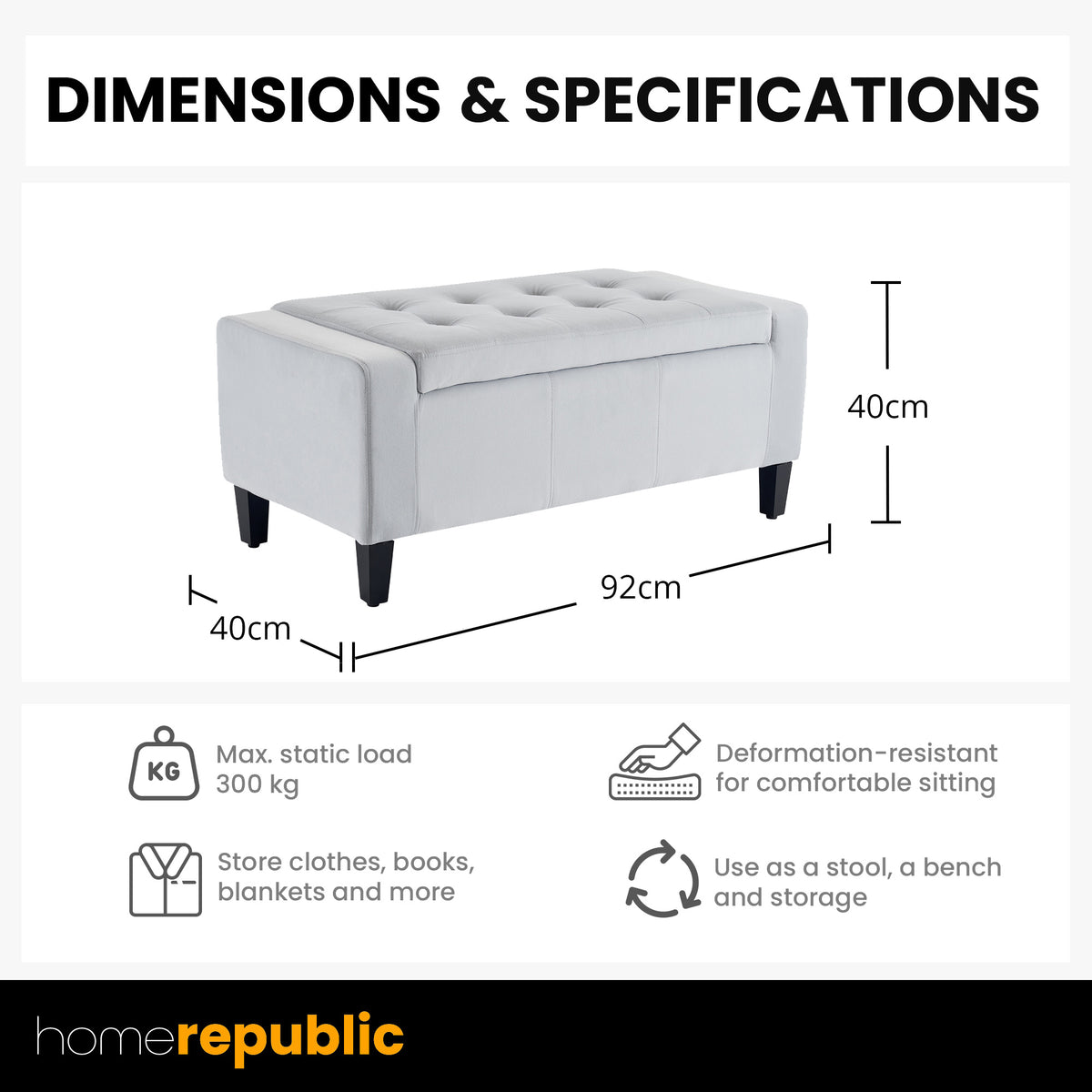 Home Republic Faux Leather Silver Ottoman Storage Bench