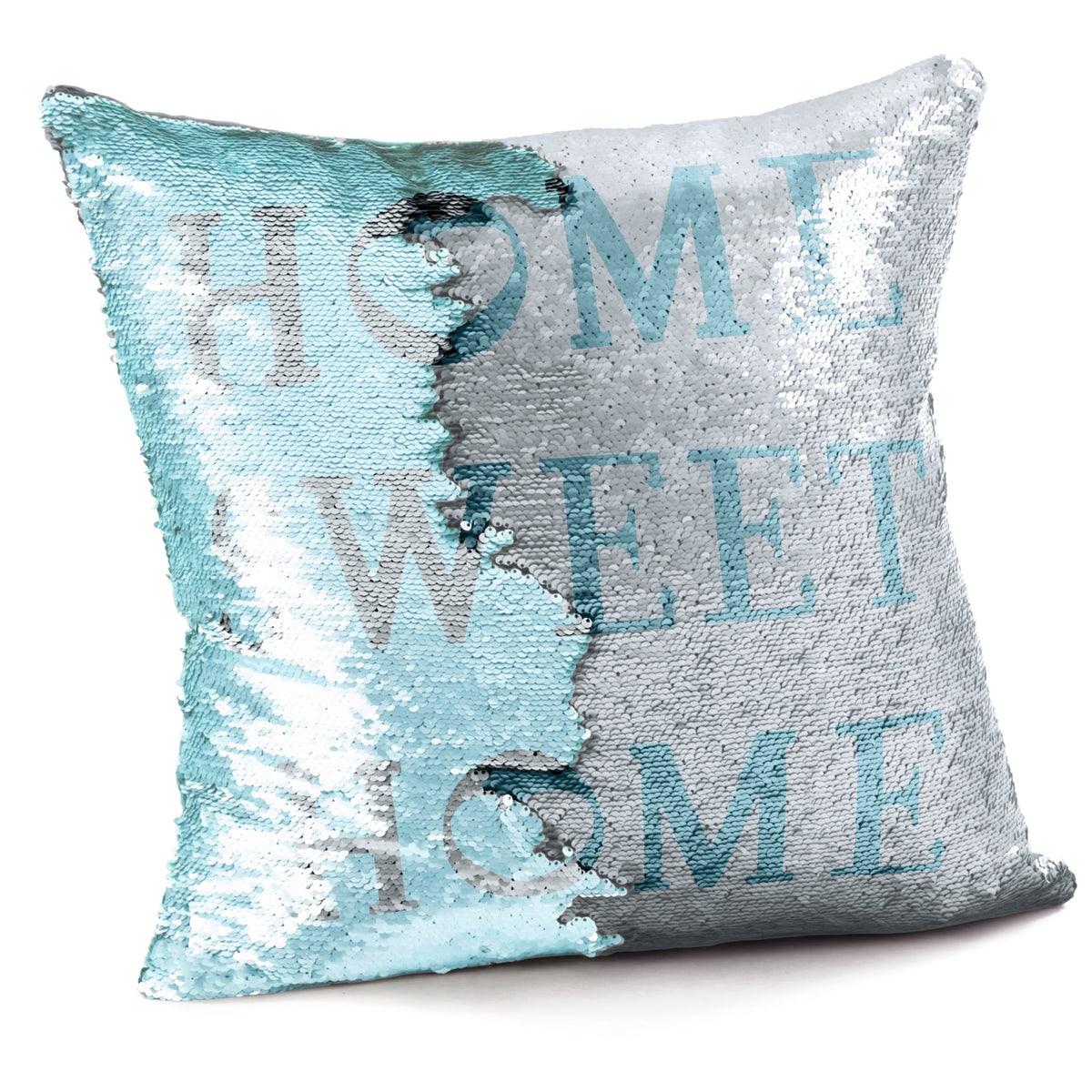 Transform your living space with our Velosso Home Sweet Home Mermaid Sequins Duck Egg and Silver Cushion Cover. Add a touch of elegance and style to your décor with this beautiful and unique cushion cover. With its captivating duck egg blue and silver colour scheme and shiny sequins, this cushion cover is sure to add a touch of luxury and sophistication to any room. Featuring the words 'Home sweet home' in elegant script, this cushion cover is perfect for those who appreciate the finer things in life. Upgrade your décor with this stylish and glamorous cushion cover that exudes comfort and style.