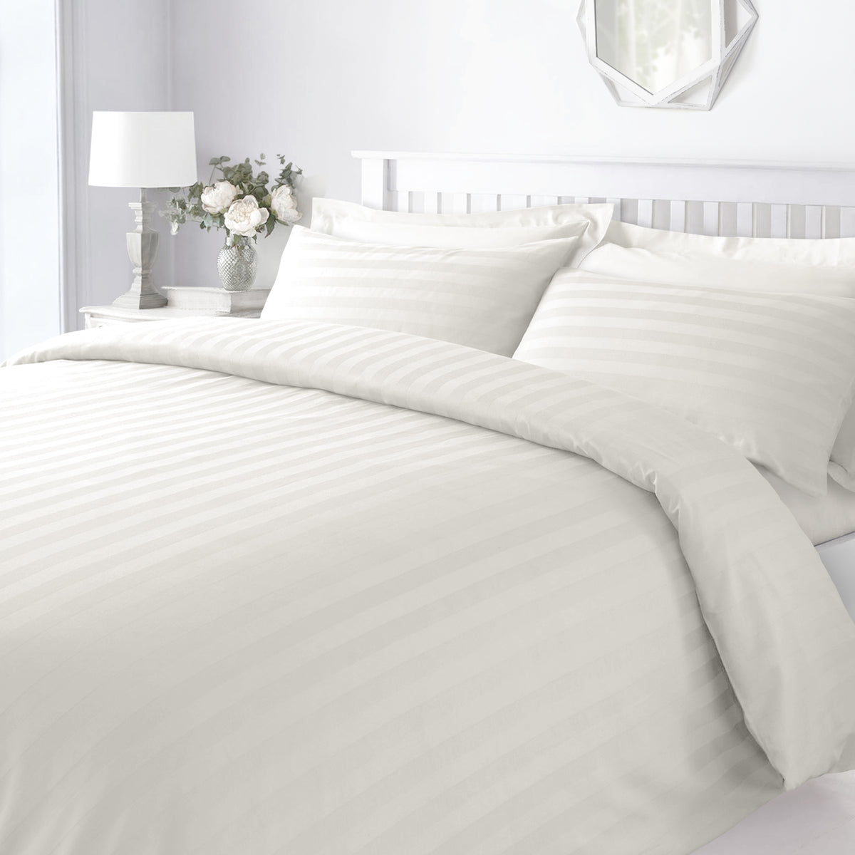 Transform your bedroom into a haven of luxury and comfort with our Sweet Dreams Hotel Stripe Cream Duvet Cover. The intricate design of vertical satin stripes adds a touch of elegance and sophistication, running gracefully along the entire duvet and matching pillowcases. The fresh and vibrant cream colour offers a cosy ambiance that will elevate the look of any bedroom, making it a timeless classic you can enjoy all year round.