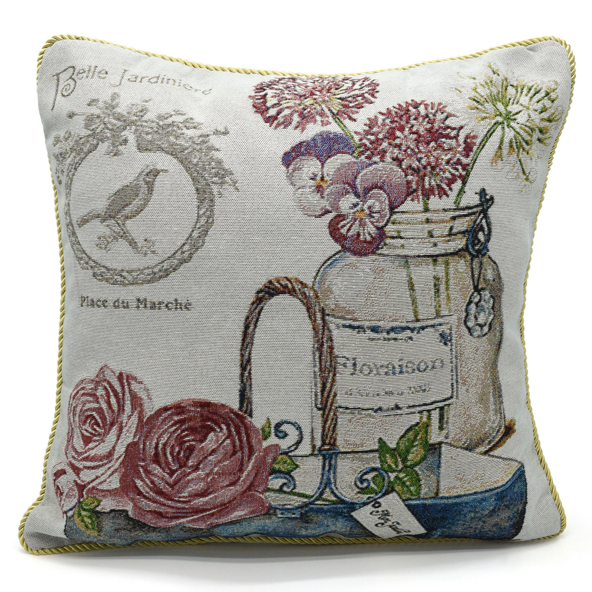 Transform your living space with our Velosso Jardine Tapestry Cushion Cover. Nothing adds more style and warmth to your home than a perfectly curated cushion, and this traditional tapestry floral design is just the thing. A stunning glass jar and basket of flowers come to life with intricate detailing and a charming lace trim. It's the perfect way to refresh your space without breaking the bank. Add texture, colour, and a touch of elegance to your home with this lovely cushion cover.