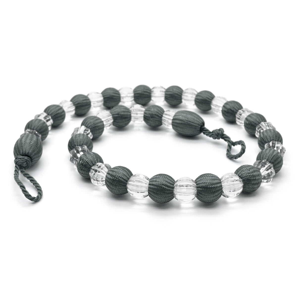 Our beaded curtain tiebacks are stunning and meticulously crafted with intricate detailing. Each tieback features a beautiful crystal followed by a knitted bead, creating a mesmerising effect that catches the eye. The clear crystals complement the charcoal coloured knitted beads, giving a touch of elegance to any room. Plus, the thin rope fastening makes it easy to use and secure.