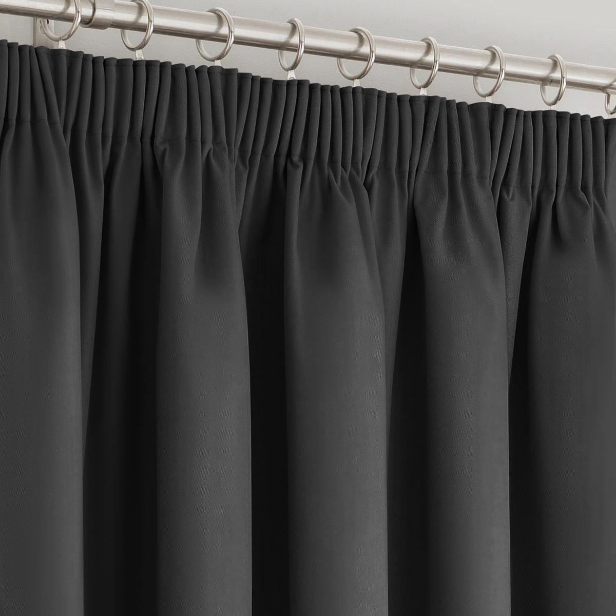 These pair of plain curtains are stylish, sleek and contemporary in a delightful shade of classic black made from 100% polyester with a triple weave. This striking shade possesses a vibrant and rich feel, a great colour option if you would like to add a pop of colour to your room or as an addition to your current décor. Made with an easy to install pencil pleat three-inch tape header. Have your curtains glide on your curtain pole creating perfect folds whilst your curtains are tied back, and an elegant drape whilst drawn. Perfect to fit onto most curtain tracks/poles. These curtains are so easy to care for, they can be washed in your washing machine and dry super-fast whilst hung on your curtain pole, require little to no ironing. PAIR OF CURTAINS, TWO PANELS INCLUDED. Thermal blackout series Constructed using tightly woven fabric Veloso thermal blackout series provides increased privacy blocking out unwanted draught keeping your room cool during summer also eliminates cold draughts from entering during winter resulting in the energy efficiency with triple-layered fabric, Veloso thermal blackouts series also reduces outside noise, innovative high-density yarn ensures light is filtered as well as blocking harmful UV-rays. Energy-efficient reduces noise, Uv rays protection, eliminates draught, Thermal and Blackout. ONE PAIR OF CURTAINS