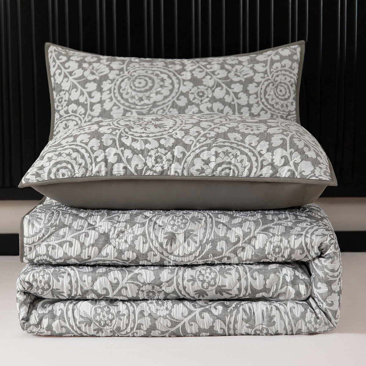 Update your bedroom with our Velosso Matteo Luxury Jacquard Bedspread Set. Featuring a luxurious damask paisley trail design in neutral grey, this set embodies timeless sophistication. Made with precision, the intricate jacquard weaving creates a mesmerising pattern reminiscent of royal opulence.