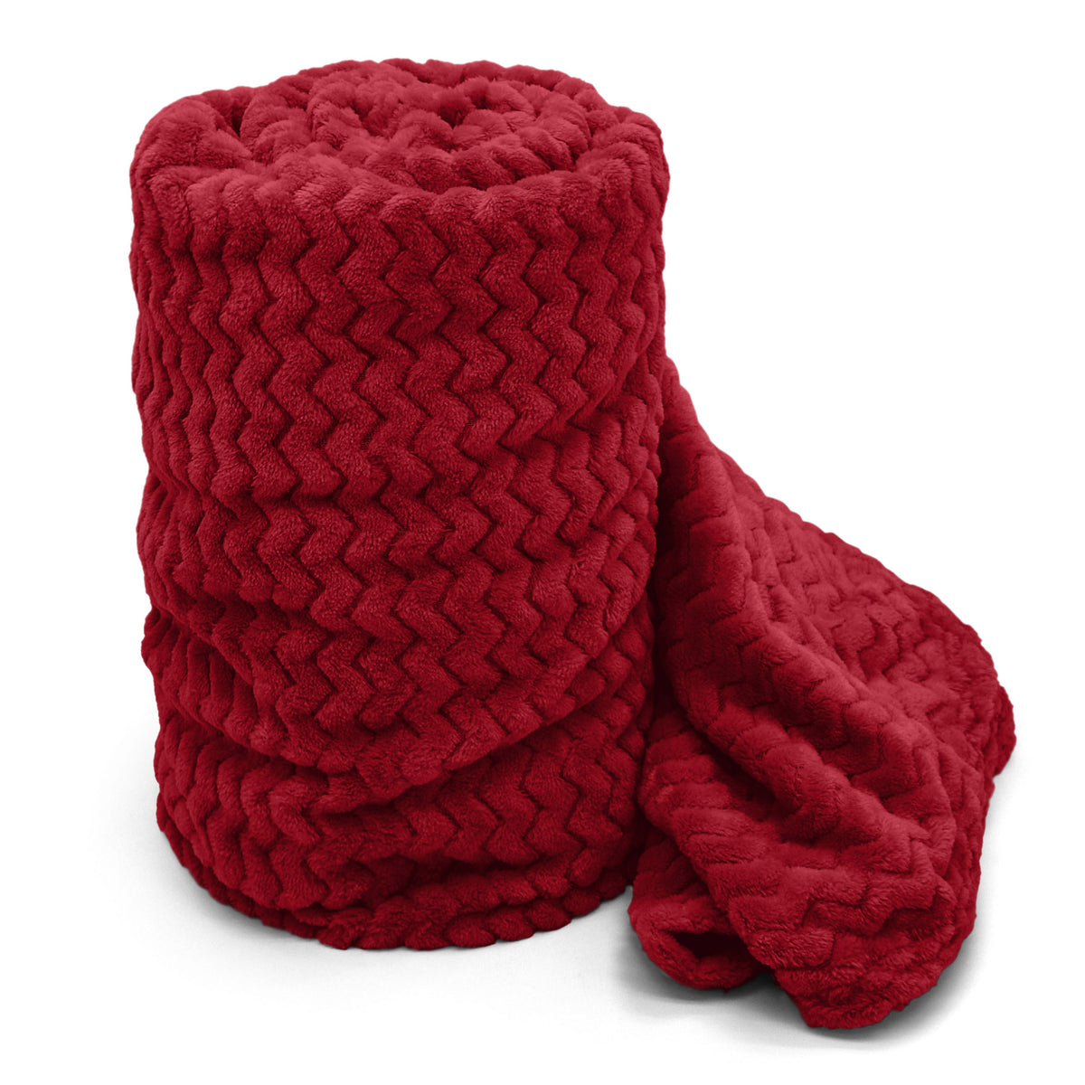 Refresh your space for less with our Velosso Chevron Moda Plush Red Blanket. Made from premium-quality ribbed fleece fabric, this plush red blanket is luxuriously soft and inviting. The chevron design adds a touch of sophistication and texture to your living space, making it a stylish and functional accessory for your bed, sofa or armchair. The bold red colour is eye-catching and elegant, adding a pop of colour to any room.