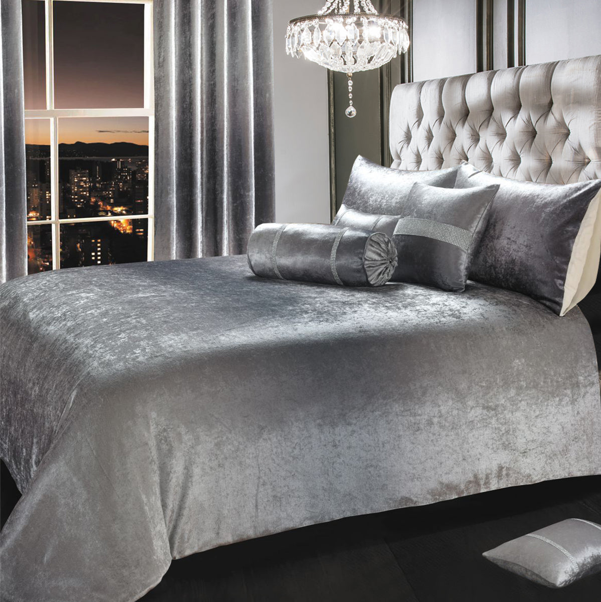 Made with a breathable polycotton blend on the reverse, this grey crushed velvet duvet cover set will keep you comfortable all year round, with proper ventilation for warm nights and cosy warmth for cold nights. The modern and fashionable tonal ombre effect will elevate your bedroom décor, and you can easily enhance the look further with cushions, throws and bedspreads. This set includes both a duvet cover and matching pillow cases.