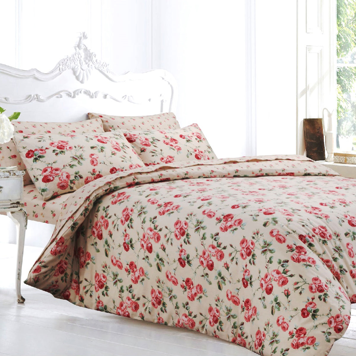With a fresh and vibrant vibe, our pretty peony floral duvet set brings both style and quality to your home. Its soft pink shades of delicate peony flowers accompanied by a soft cream background ooze style and is an easy colour change. This vintage feel bedding is crafted from a soft flannelette fabric guaranteed to keep you warm and cosy in the colder months. This heavenly peony duvet set is a 100% brushed cotton offering softness, durability, and comfort. With easy care and machine washable.
