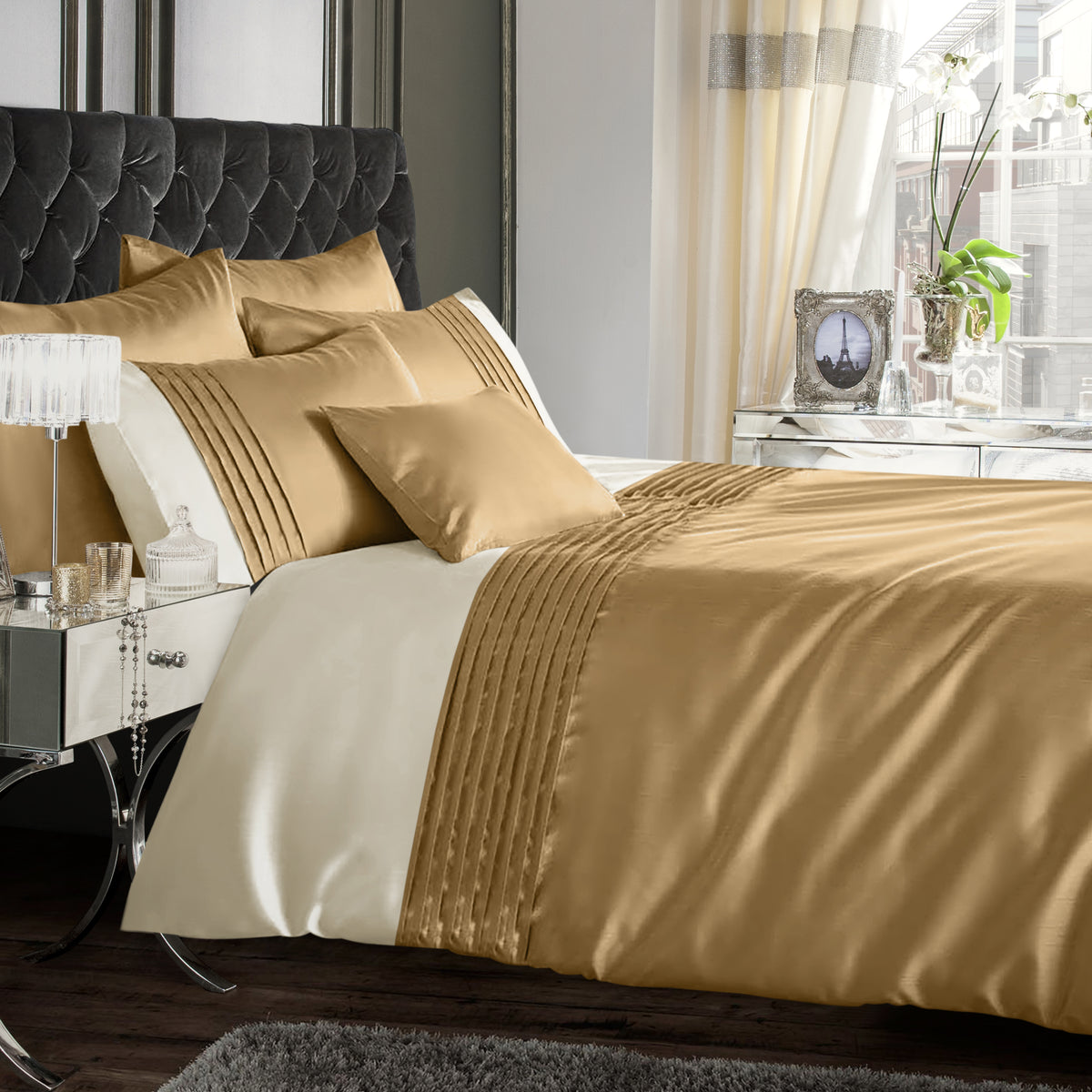 Get ready for a luxurious night’s sleep with our Intimates Perez Faux Silk Latte Duvet Cover and Pillowcase Set. Featuring a large white border at the top of the duvet cover, this bedding is in a sumptuous shade of latte brown. With a glamorous and smooth faux silk finish, our latte-coloured duvet set is machine washable and very easy to care for. Our latte-coloured faux silk duvet cover and pillow case set is available in a range of sizes, making it easy to find the perfect fit for your bed.