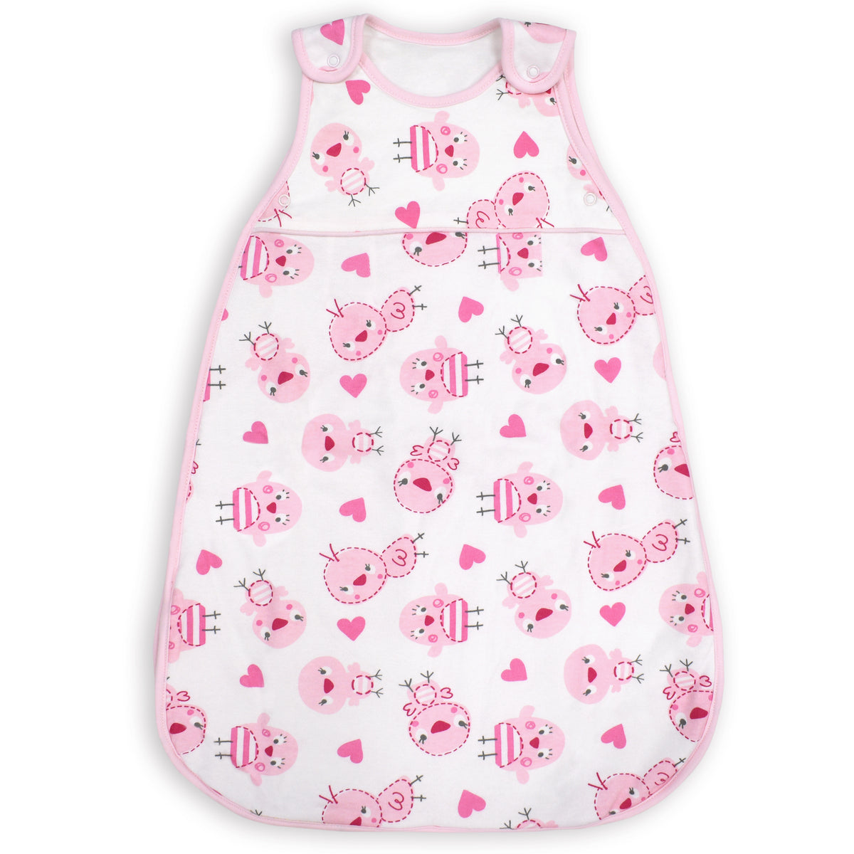 Our My Little World Pink Bird Baby Sleeping Bag is the perfect addition to your baby's bedtime routine. This sleeping bag features a convenient zip opening for easy nappy changes, along with a popper opening at the top for hassle-free dressing. With plenty of wiggle room inside, your little one will stay comfy and cosy all night long. Made from 100% cotton, this sleeping bag is both breathable and machine washable for your convenience. Plus, the cute pink bird design is sure to delight both you and your baby.