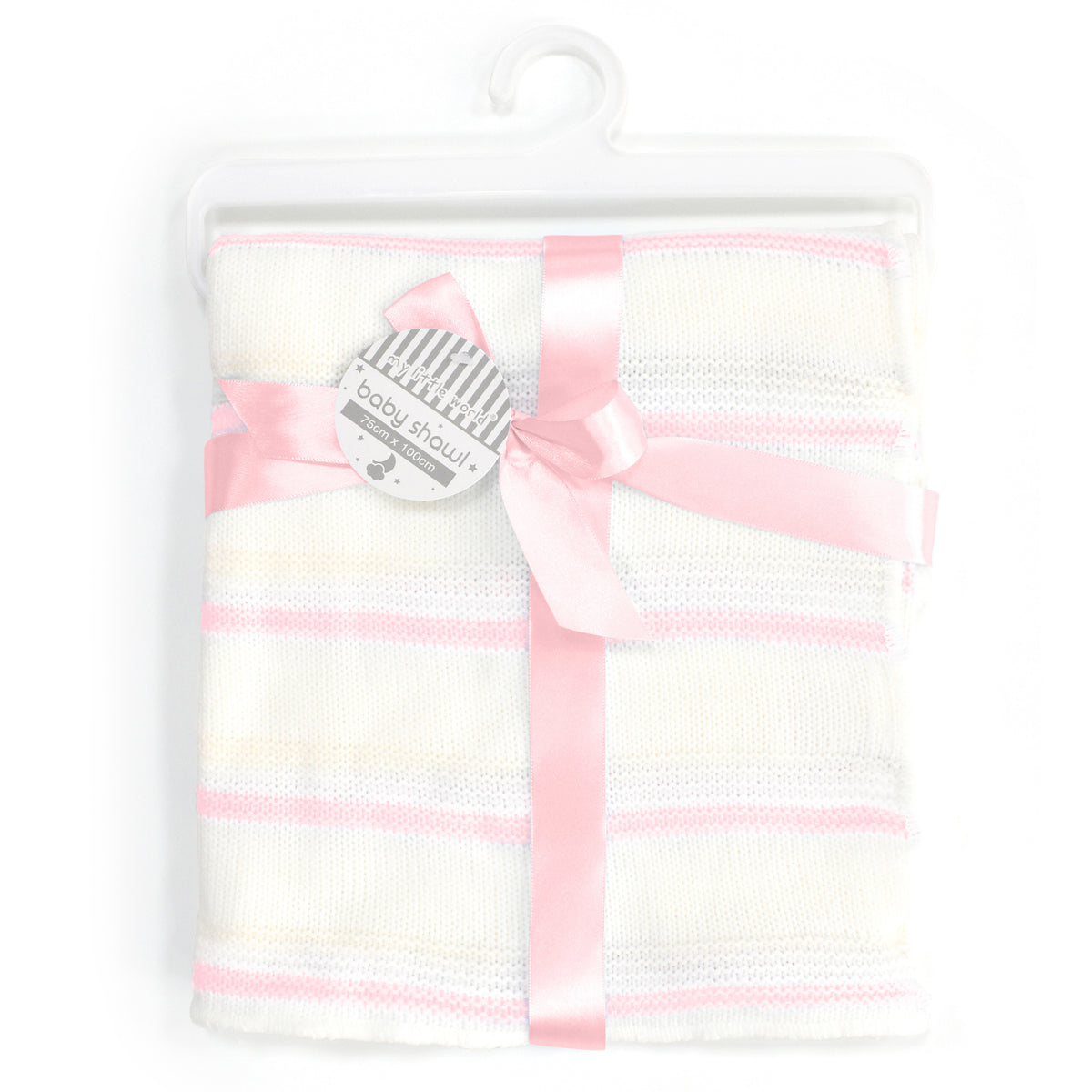 Looking for a stylish and cosy baby shawl? Look no further than our My Little World Pink Stripe Knitted Baby Shawl. A gorgeous white and pink striped shawl made with the utmost care and attention to detail, this shawl is perfect for keeping your baby warm and snug. Featuring a detailed woven and ribbed pattern, this shawl is both smart and cute, making it the perfect addition to any baby's wardrobe. Whether you're using it in a Moses basket or a cot, this pink stripe knitted shawl is sure to provide your little one with the ultimate comfort.