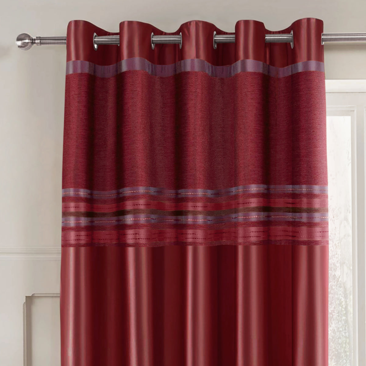 Add a touch of luxury to your home décor with our Intimates Renatta Wine Ready Made Eyelet Curtains. The bold wine colour and faux silk stripes offer a sophisticated and stylish look. The eyelet header design makes for easy installation, while the fully lined curtains provide privacy and insulation. These curtains are also machine washable for easy care and maintenance. Elevate the ambiance of any room with the sleek and elegant design of these ready made eyelet curtains.