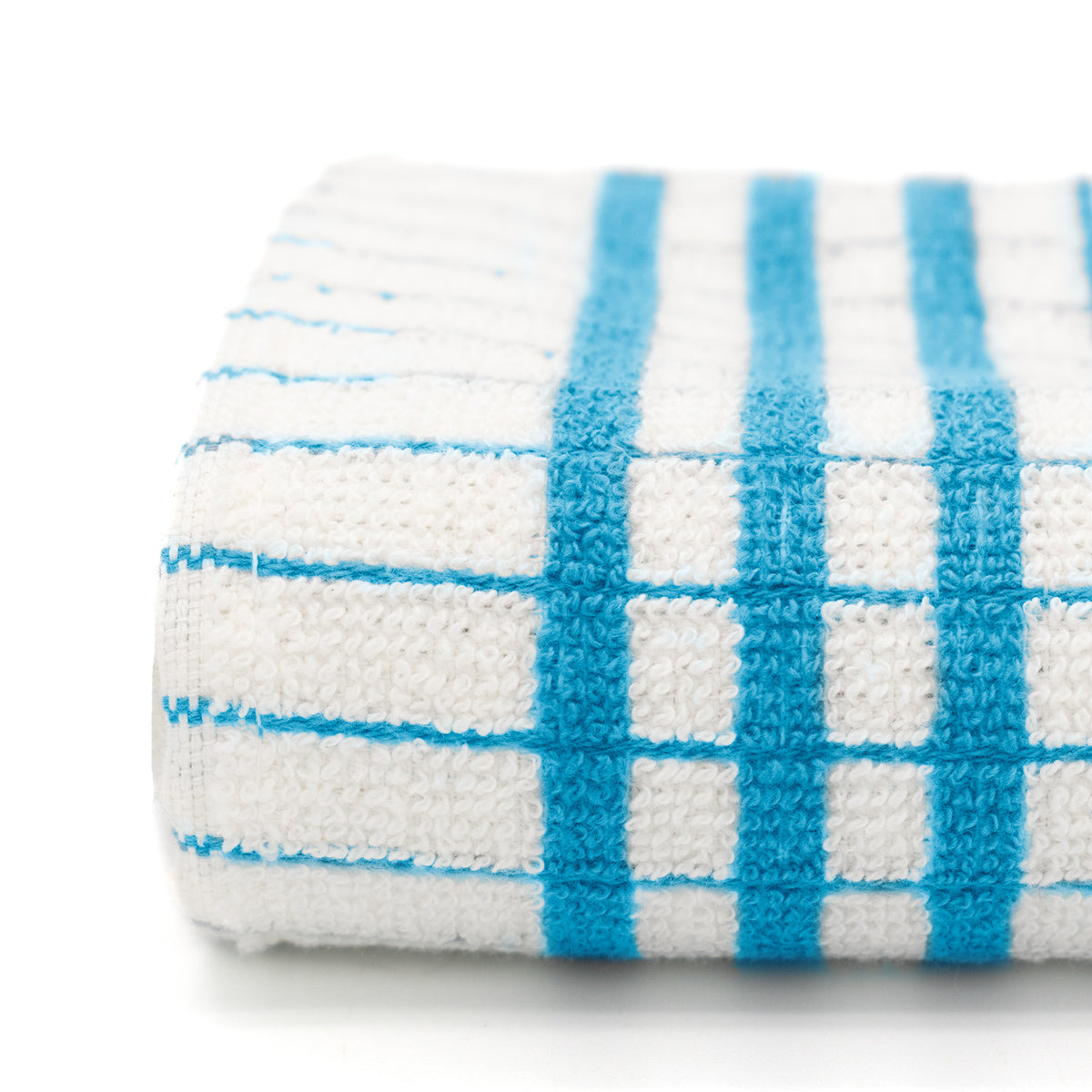 Whether you're wiping away spills, drying delicate glassware or showcasing it as a stylish accent, this towel is very functional. The woven check pattern adds a classic and timeless charm to the towel, making it a versatile choice for any occasion. The combination of intricate weaving techniques and high quality materials ensures durability and long-lasting performance. Made from premium cotton, this teal check tea towel offers exceptional absorbency, making it perfect for drying dishes or hands quickly and efficiently.