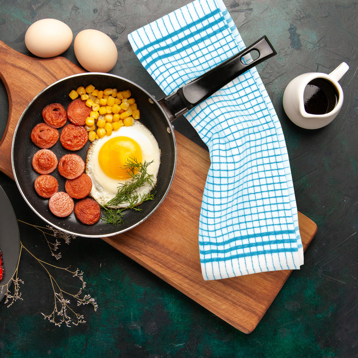 Shop our Shaws Large Woven Teal Checked Tea Towel, a must-have accessory for pubs, chefs and parties alike. Made with the utmost attention to detail, this kitchen tea towel is designed to elevate your experience and add a touch of professionalism with the classic check design. Generously sized at 50cm by 70cm, this teal checked tea towel provides ample coverage for all your kitchen needs.