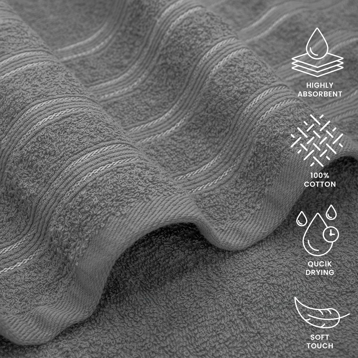 Shop our Velosso Hampi 100% Cotton Striped Silver Towels, your everyday essentials for a luxurious bathing experience. Made from 100% cotton, these towels offer supreme softness and absorbency, elevating your daily routine to a drying delight.
